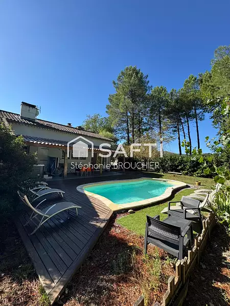 Dotée d'un vaste terrain de 2689 m² avec 4 places de parking, la maison principale de 112 m² se distingue par ses 3 chambres dont une avec salle d'eau,un cellier, un vaste salon /séjour avec cuisine ouverte équipée, une salle d'eau indépendante, une véranda. À l'extérieur, une piscine 4x8 avec terrasse couverte .