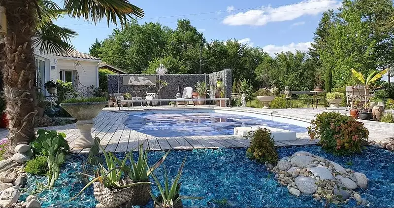 Une piscine de 12*5m avec liner neuf vous permettra de profiter des extérieurs avec vue sur les pins.