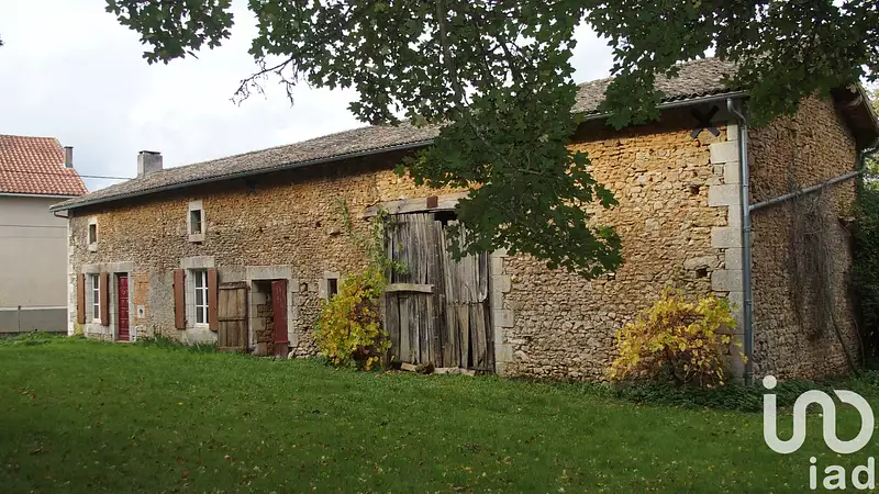 iad France - Franck CHARBONNIER vous propose: Magnifique page blanche pour votre projet de rénovation personnalisé : construction en pierre d’environ 160 m² au sol et d’une hauteur de 5,60 m, dont la toiture a été refaite en 2016, permettant la réalisation d’un projet d’habitation principale ou secondaire. Édifiée sur une parcelle arborée de plus de 1 500 m², sans vis-à-vis et avec une vue dégagée, cette propriété se compose actuellement d’une ancienne maison, d’une étable et d’une grange, complétées par de petits bâtiments agricoles (anciens « toits à cochons »). La hauteur sous faîtage permet d’envisager la création d’un étage et d’une mezzanine, portant ainsi le potentiel habitable à près de 200 m². Cette bâtisse aux cinq murs solides et au toit refait offre un large champ de possibilités architecturales pour imaginer un lieu unique et harmonieux. Située à environ 15 minutes du bourg de Vivonne et à seulement 3 minutes de la gare TER de Voulon-Anché (ligne Châtellerault – Angoulême), elle allie calme, nature et proximité des commodités. Un bien rare à visiter pour se projeter dans un cadre authentique et sans nuisances.