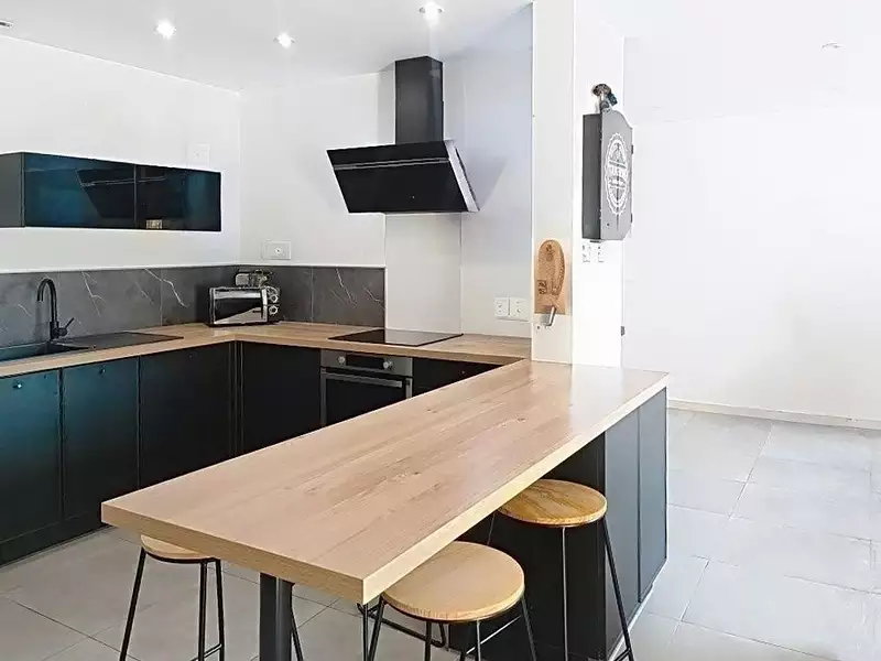 À l'extérieur, cette propriété comprend un terrain de 372 m² plat et clos avec une terrasse de 25 m2, deux places de parking avec borne de recharge, offrant ainsi un espace extérieur appréciable , paisible et fonctionnel. La maison a été rénovée, donnant aspect moderne et soigné à l'ensemble.