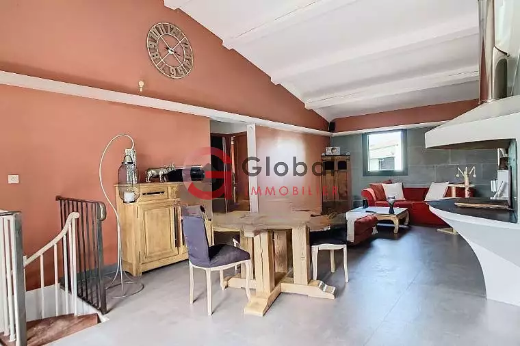 À l’étage, profitez d’un spacieux logement comprenant 3 chambres confortables dont deux avec mezzanine, un séjour lumineux avec une magnifique cheminée fonctionnelle, ouvert sur une cuisine américaine moderne tout équipée. L’espace de vie s’ouvre sur une grande terrasse de 50 m2, parfaite pour vos moments de détente ou de réception.Sur cette même terrasse,vous avez la possibilité de récupérer 30m2 environ pour fermer une partie en bâti.