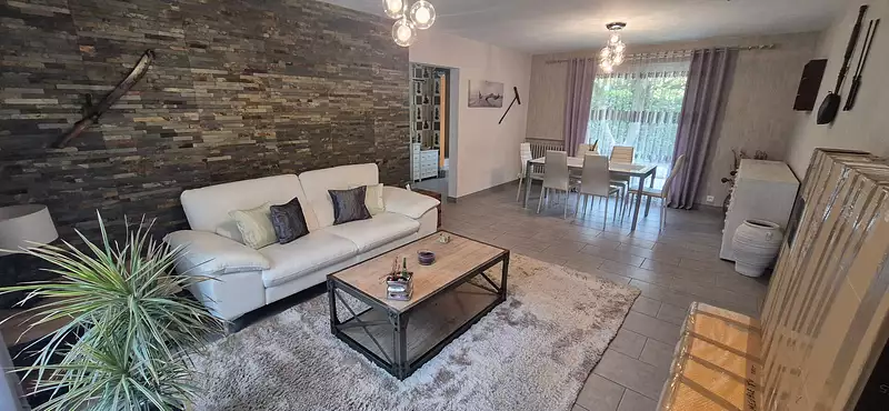 3 minutes de Crépy en Valois Grande maison indépendante comprenant : une entrée, un séjour double, une cuisine aménagée équipée, une salle de bains avec douche italienne et wc, un dressing et deux chambres. 1er étage: palier, trois chambres dont une avec un dressing privatif, une salle de douche avec wc. Un sous-sol total avec garage. Deux terrasses et un double box pour deux voitures.