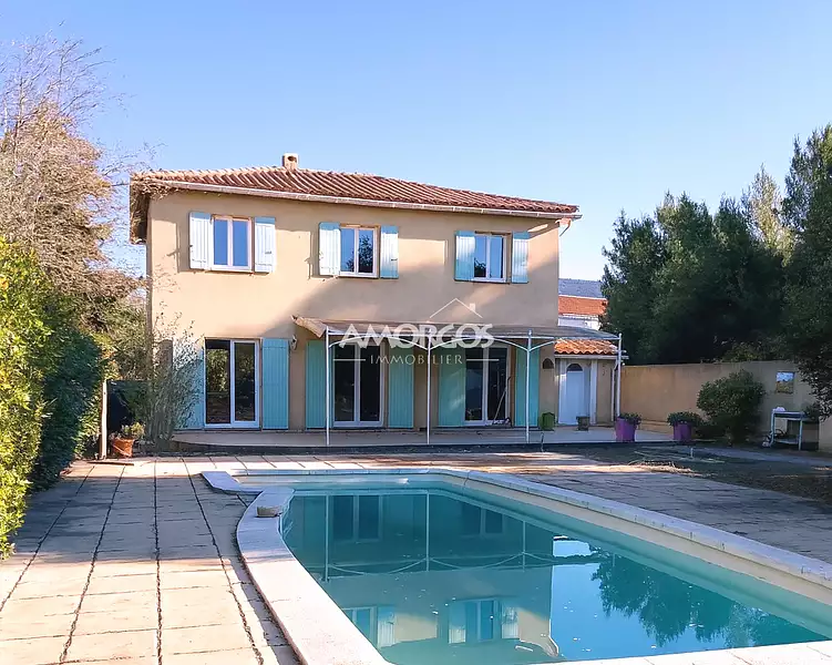 LE BEAUSSET, Située dans un environnement résidentiel paisible, tout en restant à proximité immédiate des commodités, cette villa familiale 7 pièces construite en 2002 offre 161 m2 habitables sur un terrain entièrement clos de 915 m2. Pensée pour le confort et la fonctionnalité, elle séduit par ses beaux volumes et sa luminosité. Au rez-de-jardin, l’entrée s’ouvre sur un séjour lumineux prolongé par une cuisine aménagée et équipée. De plain-pied se trouvent également un bureau ainsi que des toilettes indépendants. Un studio attenant, accessible depuis l’intérieur de la maison, complète ce niveau : il dispose d’une pièce de vie ainsi que d’une salle d’eau équipée d’un meuble vasque, d’une douche et d’un chauffe-eau solaire. À l’étage, la partie nuit dessert quatre chambres, dont trois avec placards intégrés, une salle de bains, une salle d'eau dôtée d'une douche ainsi que des toilettes indépendants avec lave-mains. Les extérieurs offrent un véritable espace de détente : une piscine chauffée (10 × 4 m) au chlore, deux pergolas, ses terrasses et un espace barbecue, idéal pour profiter des beaux jours. Côté confort, la villa est équipée d’un poêle à bois rotatif, d’une climatisation réversible et de radiateurs électriques. Prévoir la mise en conformité de l'assainissement. Les informations sur les risques auxquels ce bien est exposé sont disponibles sur le site Géorisques : www.georisques.gouv.fr