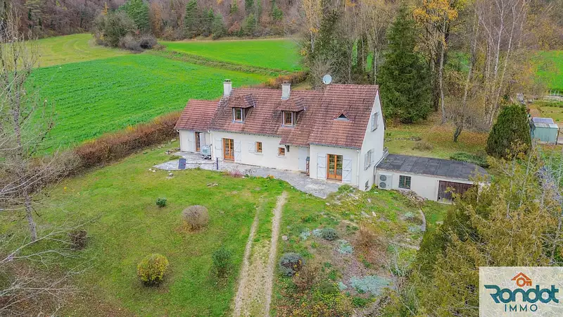 Agence immobilière RONDOT IMMO - Julien BRAYARD 06 08 74 88 90 vous propose : MAREY SUR TILLE Vous recherchez une maison familiale, avec un grand terrain au calme et une vue dégagée? Alors n’hésitez plus et venez découvrir cette maison sur sous-sol complet et son terrain de plus de 6480 m2 avec peu de vis-à-vis et cette vue rare sur la nature.
