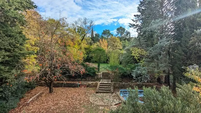 Rare à la vente: cette villa de 1975 vous offre le privilège d’un accès à pied au centre du village, tout en bénéficiant d’un environnement verdoyant sur un terrain de 1.350m². Avec ses 144m² habitables (+ garage, cellier, buanderie, grenier aménageable), elle se compose au rez-de-chaussée d’une entrée avec rangements, d’une cuisine indépendante avec coin repas et accès terrasse, d’un séjour lumineux de 39m² avec cheminée et d'une seconde terrasse couverte, d’une chambre avec placard, d’une salle de bains avec douche, de WC séparés, d’une buanderie, d’un cellier ainsi que d’un accès direct au garage. À l’étage, trois chambres dont une avec salle d’eau, ainsi qu’un grenier aménageable de 30m² (fenêtre, électricité, eau et évacuation déjà en place) offrent de belles perspectives d’aménagement. La terrasse donne sur un jardin traversé par le canal d’arrosage, idéal pour entretenir vos plantations. Le bassin existant est à rénover, mais le zonage Ub permet d’envisager d’autres options de baignade. Exposition sud, raccordement au tout-à-l’égout, belle construction, proche du centre… Cette maison a tous les atouts pour vous séduire.