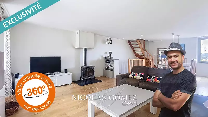 Vous disposerez sur plusieurs niveaux d'une pièce de vie traversante avec son poêle à bûche de plus de 40 m², d'une cuisine, de 4 chambres dont une suite parentale avec salle de bains et dressing, d'une salle de jeux, d'une salle d'eau et de 2 toilettes.