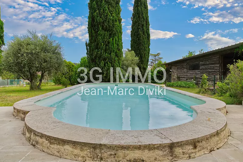 Un jardin arboré composé d'essences méditerranéennes, d'un puits, d'une piscine et d'une grande remise contribuent à la magie de cette propriété de 2 610m2.