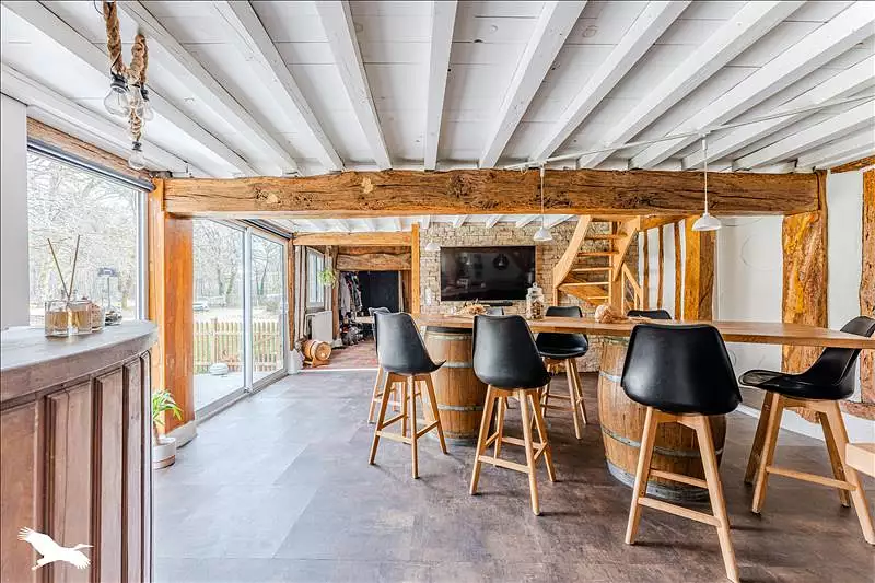 Maison de charme avec ses poutres et colombages apparents, composée d'un salon, salle à manger, cuisine équipée, cellier, 4 chambres, deux salles de bain, une mezzanine et un bureau. Belle parcelle de 4100m2, donnant directement sur la forêt. Une terrasse, piscine et garage viennent compléter ce bien. Commerces de proximités.