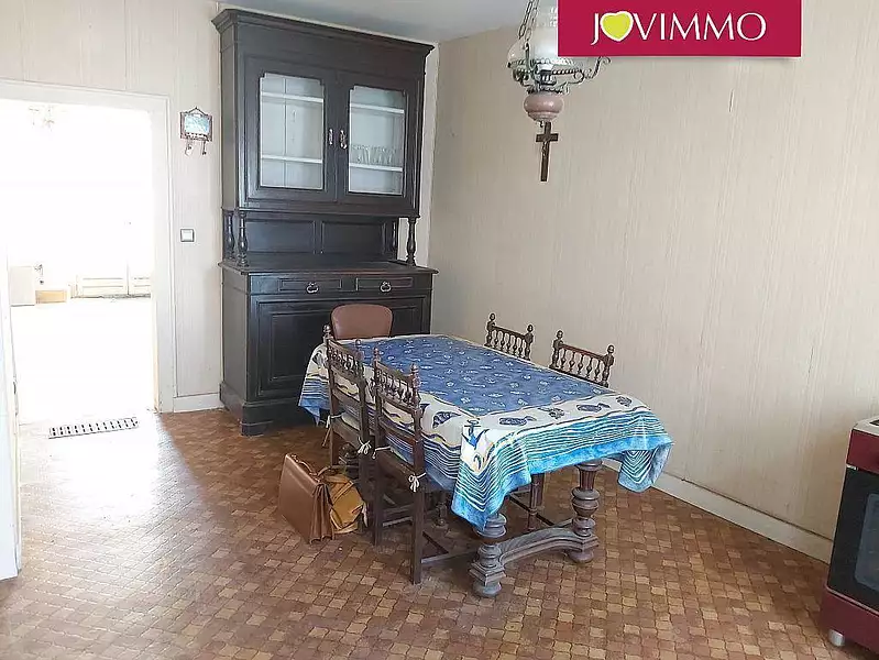 Grande maison d'environ 163 m², proche de tous commerces et commodités composée d'une cuisine, salon, salle à manger, 5 chambres toutes équipées d'un lavabo et un bidet, salle de douches, salle de bains, 2 wc, chaufferie avec une chaudière neuve gaz de ville, double vitrage au rez de chaussée, plusieurs dépendances, cave.