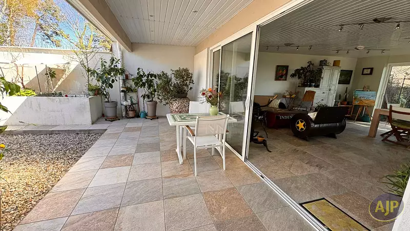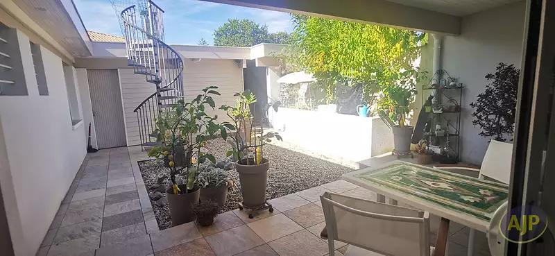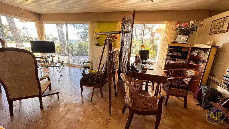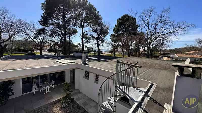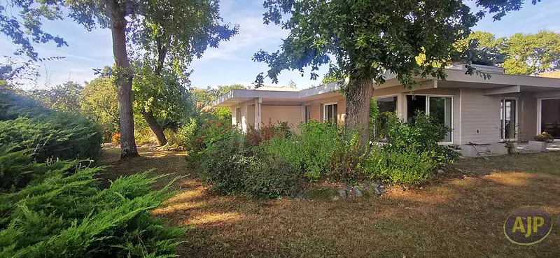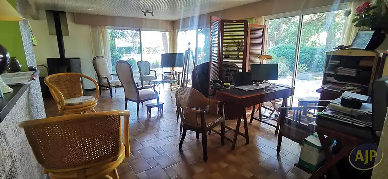 Située dans le très prisé quartier du port de Taussat, venez découvrir cette belle villa d'architecte depuis laquelle vous pourrez admirer le port de plaisance et le Bassin ! Édifiée de plain pied sur une superficie totale de 163 m3 habitables, les volumes de pièces de vie totalisent 80 m2 ! Elle vous offre 3 chambres dont une ouvrant sur la terrasse avec sa salle de bains privative avec WC, 2 chambres supplémentaires ainsi qu'un bureau ou une petite chambre d'appoint et une seconde salle de bains avec WC. La cuisine séparée pourra si vous le souhaitez être ouverte sur la pièce de vie, et elle donne sur un joli patio intérieur bien végétalisé pour prendre vos repas à l'abri de la chaleur. Les pièces à vivre sont doubles et peuvent être réunies. Bénéficiant d'une triple exposition, elles sont lumineuses grâce aux nombreuses baies vitrées qui apportent toute la luminosité souhaitée. Vous profiterez donc d'un beau salon-salle à manger depuis lequel vous verrez le port et le Bassin et vous apprécierez sans aucun doute le poêle mixte bois et granulés pour les soirées d'hiver. Programmable à distance vous pourrez également chauffer la maison avant votre arrivée. La seconde pièce de vie ressemble à un beau jardin d'hiver. Traversant, elle ouvre par de larges baies coulissantes à la fois sur le patio intérieur et sur le jardin de la maison, et constitue un beau salon supplémentaire de 40m2 vous offrant de multiples usages. Côte extérieur cette villa a tout ce qu'il vous faut ! Un grand garage buanderie attenant, un double carport et un bel atelier. Son aout majeur, c'est un escalier qui vous permettra d'accéder depuis le patio à l'immense toit terrasse surplombant toute la maison pour admirer encore mieux la vue vers le Bassin et profiter de magnifiques couchers de soleil ! Le jardin très arboré et fleuri est verdoyant grâce à l'arrosage intégré émanant d'un puits foré. Les belles plages de Taussat et tous les commerces de proximité du bourg sont à 5mn à pied. La piste cyclable juste en face de la maison vous emmènera vers Andernos les Bains en quelques tours de roue. Située en bord de mer dans cette charmante station balnéaire de Taussat très appréciée des connaisseurs, c'est sans conteste une très jolie villa d'architecte que vous pourrez facilement mettre à votre goût pour en faire un vrai havre de paix. (3.40 % honoraires TTC à la charge de l'acquéreur.)Afficher plus