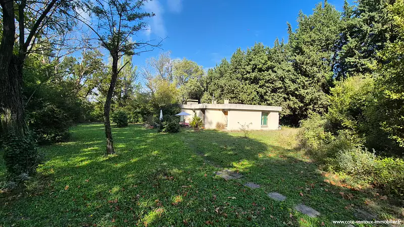 A l'abri des regards, au milieu d'un écrin de verdure tout près du golf, de l'aéroport et des commodités, se dresse cette villa d'architecte au style original avec son toit plat et conçue par un élève de Le Corbusier ! Cette construction de plain pied vous offre 163m² de volume avec une entrée et, un séjour dotés d'un très joli sol en marbre noir. Côté nuit, vous retrouverez 4 chambres orientées sud-est et sud-ouest ainsi que 2 salles d'eau. De part sa cuisine équipée, vous pourrez accéder à sa terrasse baignée de lumière vous permettant ainsi de profiter des beaux jours dans son jardin naturel arboré de plus de 5000m² qui abrite une piscine de 10x5. De plus, cette villa dispose également d'une grand pièce de plus de 40m² actuellement aménagée en studio d'enregistrement, qui pourrait être transformée au gré de vos besoins et envies ! A cela s'ajoute une buanderie, un local technique et un sous-sol. Afin de rendre cette villa encore plus confortable, certains travaux seraient à prévoir tels que le remplacement de la fosse septique, l'installation de menuiseries doubles vitrages et de volets roulants électriques ainsi que la pose d'une pompe à chaleur. Une visite s'impose pour apprécier pleinement le charme et le cadre de vie idyllique de cette villa d'architecte confortable et calme. Un environnement de nature à 2 pas des commodités ! Pour un achat en toute sérénité, contactez Nathalie au 06 01 95 28 55. Côté Ventoux Immobilier a le plaisir de vous accueillir dans ses agences disposant d'un parking à AUBIGNAN et MAZAN. Vous pouvez estimer votre bien en ligne sur notre site : Les informations sur les risques auxquels ce bien est exposé sont disponibles sur le site Géorisques : www.georisques.gouv.fr Nathalie TREMBLAY (EI) Agent Commercial - Numéro RSAC : 919 540 609 - AVIGNON.