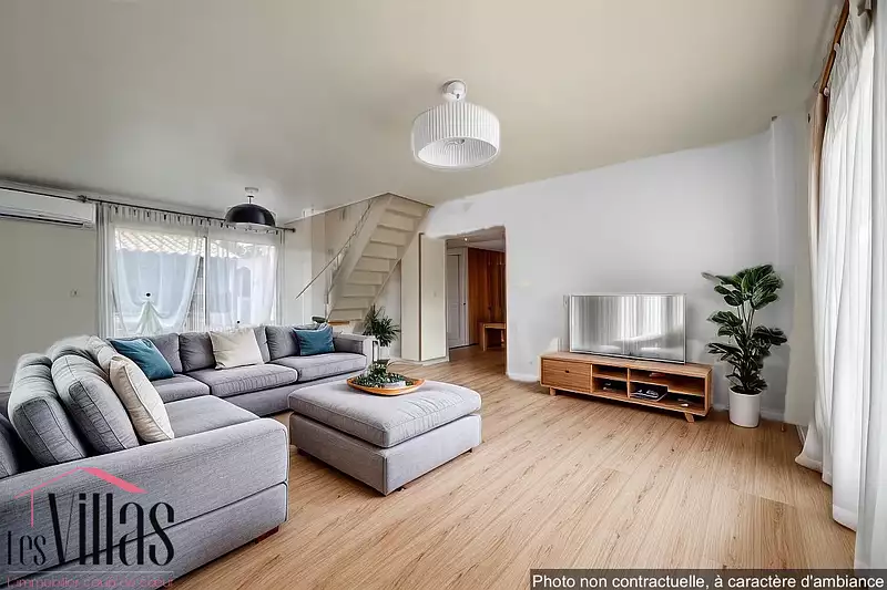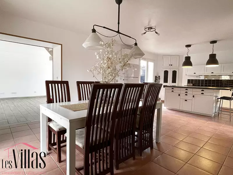Dès l’entrée, vous serez séduit par une pièce de vie lumineuse où le salon spacieux et la salle à manger chaleureuse s’ouvrent sur une cuisine moderne et équipée. Son îlot central et ses nombreux rangements en font un espace fonctionnel et convivial, parfait pour partager des moments en famille ou entre amis.