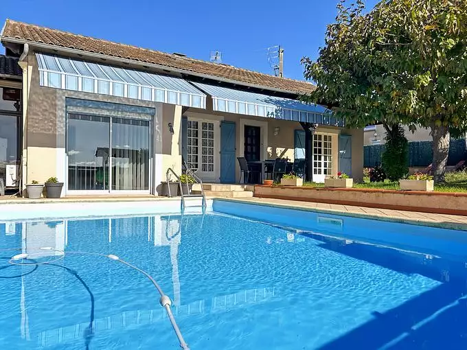 Un agréable jardin entoure la maison et abrite une piscine exposée plein sud, parfaitement entretenue — un véritable havre de paix pour profiter des beaux jours.