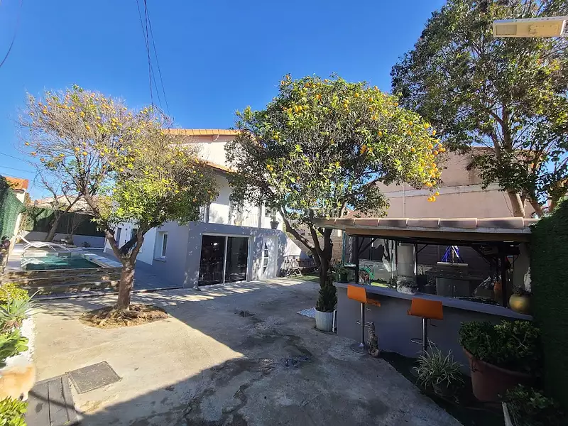Nouveau chez Sovimo! À vendre, une villa de 164 m2 composée de 2 appartements, actuellement aménagés en deux unités séparées mais pouvant facilement être réunis en un seul grand espace de vie. Cette propriété est située sur un terrain de 386 m2 et comprend également une cuisine d'été couverte, ainsi qu'un garage double en enfilade. Les propriétaires pourront également profiter d'une belle piscine de 2m sur 6.50m pour se détendre en été.Cette villa est idéalement située, proche des commerces et des transports en commun. Elle comprend 4 chambres, 3 toilettes, 2 salles d'eau et bénéficie d'une climatisation réversible pour un confort optimal en toutes saisons.Ne manquez pas cette occasion de devenir propriétaire de cette belle villa, offrant un cadre de vie paisible et agréable. Contactez-nous dès maintenant pour organiser une visite! M.HENOUS 0608279284