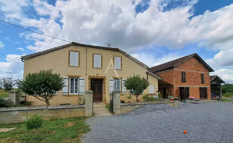 A 5' de Nogaro Ancienne bâtisse d'environ 164 m² habitable, beaux volumes, charme assuré ! Elle vous offre une entrée donnant sur un majestueux couloir desservant une jolie cuisine aménagée avec son coin salle à manger, un spacieux séjour, quatre belles chambres d'environ 13,13,14 et 16 m², une salle d'eau, wc séparé, buanderie. Les combles de cette maison isolés peuvent être aménagés en totalité . Une dépendance d'environ 164 m² sur deux niveaux en bon état peut être aménagée avec beaucoup de charme. Vous cherchez un endroit pour faire des gîtes, ce bien vous convient parfaitement ! Des travaux sont à prévoir, nombreux ont été effectué Le terrain totalement clôturé finira de vous charmer, un ancien chai en bon état, un coin terrasse couvert. Beaucoup de charme pour cette maison authentique Chauffage pompe à chaleur. (4.65 % honoraires TTC à la charge de l'acquéreur.)