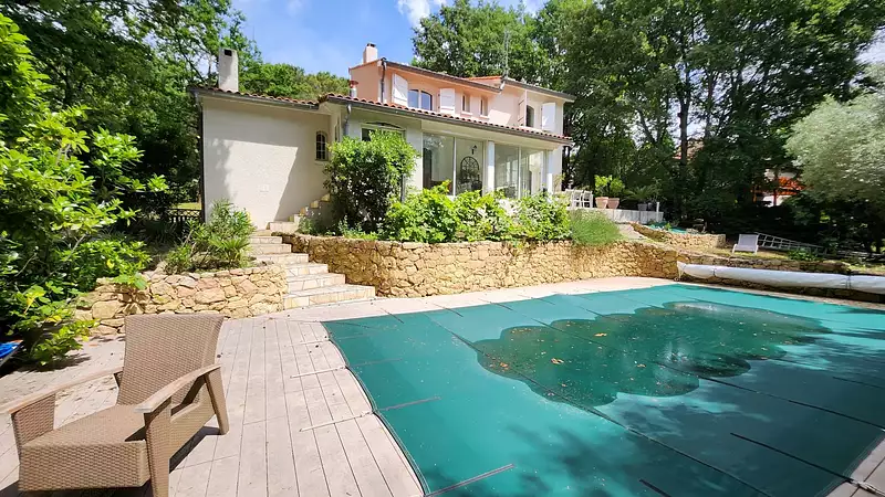 Située à Aussonne, au c?ur d'un environnement verdoyant et paisible, cette superbe villa T6 de 165 m², parfaitement entretenue, vous séduira par ses prestations de qualité et son cadre de vie privilégié. Édifiée sur un terrain arboré de 1 000 m² avec abri de jardin et piscine, cette maison offre : Un spacieux salon/séjour lumineux avec cheminée insert Une cuisine entièrement équipée Quatre belles chambres Une salle de bain et deux salles d'eau Une véranda agréable et une salle de sport Les équipements récents garantissent confort et efficacité énergétique : menuiseries neuves en double vitrage, cumulus thermodynamique, chaudière à granulés et électricité aux normes. Aucun travaux à prévoir ? Un bien rare et clé en main ! 590 000 € Grand Toulouse Immobilier tel 0561341333 ref SL250 Les informations sur les risques auxquels ce bien est exposé sont disponibles sur le site Géorisques : www. georisques. gouv. fr