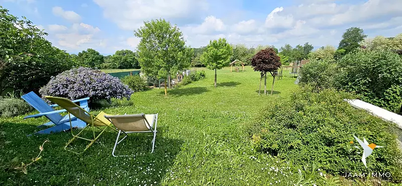 Vous serez immédiatement séduit par son beau terrain arboré et sans vis-à-vis de 1 200 m2, complété d'un pré entièrement équipé pour recevoir des animaux (actuellement 2 chevaux) : clôtures électriques, eau, électricité, abris…. Le tout pour près d'1,5 hectares, vous conférant une tranquillité absolue. Possibilité de vendre ou louer le pré à part (parcelles et entrée indépendantes).