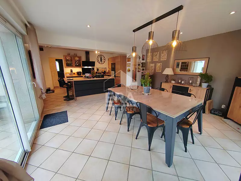 Construite en 1982 et en très bon état, cette maison familiale de type 8 sur sous-sol complet en parfait état vous comblera avec ses plus de 165m² habitable comprenant 4 lumineuses chambres + 2 au sous-sol dont 1 avec accès indépendant de près de 19m² avec salle de bains privative. Profitez d'un confort optimal avec un grand espace de vie d'environ 65m² agrémenté d'un poêle, ainsi qu'avec une cuisine ouverte récente aménagée/équipée. La maison dispose d'un terrain de 600m², accueillant 2 terrasses dont une qui à vue directement sur la piscine hors-sol chauffée, parfaite pour les belles journées d'été. Les menuiseries ont été rénovées récemment et un chauffe-eau neuf a été installé en 2022. Le sous-sol dispose de ses 2 chambres, d'un garage double, un cellier et une buanderie. Cette maison représente une opportunité rare à saisir. Contactez-nous dès maintenant pour une visite !