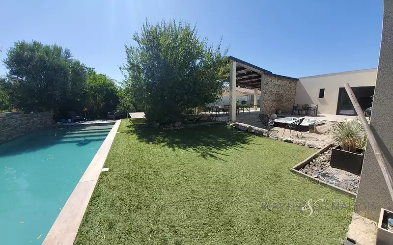 Découvrez cette superbe maison d'architecte moderne de plain-pied, conforme aux normes RT2012, offrant 165 m² de confort et de style sur un terrain spacieux de 1093 m². Accessible par un chemin privé d'environ 400 m², au fond d'une impasse, cette propriété est idéale pour ceux cherchant tranquillité et confort. Plus de 70 m² d'espace jour, inondé de lumière grâce à de grandes baies coulissantes en menuiseries aluminium noir sablé, ouvrant sur deux terrasses carrelées parfaitement intégrées dans un jardin arboré et clôturé, facile à entretenir. Salon moderne accueillant, agrémenté d'un insert double face pour créer une atmosphère chaleureuse. Cuisine équipée avec un grand îlot central et un spacieux coin repas, parfait pour vos réceptions, le tout dans une décoration contemporaine et cosy. 4 chambres spacieuses avec grands placards, dont une suite parentale avec dressing et salle de bain privative (baignoire d'angle, douche italienne et doubles vasques). Un bureau/chambre d'amis adaptable, idéal pour travailler, recevoir ou aménager un espace de jeu. Une deuxième salle d'eau et un WC séparé, rattachés au bureau et à la 4ème chambre, offrant un véritable "espace dépendant" pour l'autonomie des adolescents ou des seniors. Un abri photovoltaïque de 40 m², pouvant servir d'abri voiture, de terrasse couverte ou aménagé en garage après quelques travaux. Grande cour goudronnée de plus de 100 m²; un espace cuisine d'extérieur et un SPA semi-enterré pour des moments de détente inoubliables. Profitez également d'une piscine moderne de 9,20 x 3,50 m avec grande plage, sécurisée par un volet roulant, offrant une ambiance estivale propice à la convivialité Toit plat au design moderne encore sous garantie décennale, avec la majorité refaite à neuf cet été. Rénovations récentes incluant peintures intérieures, enduit extérieur, volets en aluminium, zinguerie et majoritairement la toiture, vous assurant une tranquillité d'esprit totale. Panneaux photovoltaïques avec revente avantageuse de 33 cts/kWh, soit environ 18 000 euros de gains sur les 9 années restantes du contrat EDF OA solaire ! A seulement 2 minutes du Leclerc Drive et de l'accès autoroute A68, facilitant vos trajets vers Toulouse ou Albi. Vous serez à 2 km du charmant village de Brens, offrant écoles et commerces, et à proximité de Gaillac, une ville dynamique avec collège, lycée et activités pour toute la famille. Nicolas COMBES (EI) Agent Commercial - Numéro RSAC : 822 896 353 - ALBI.