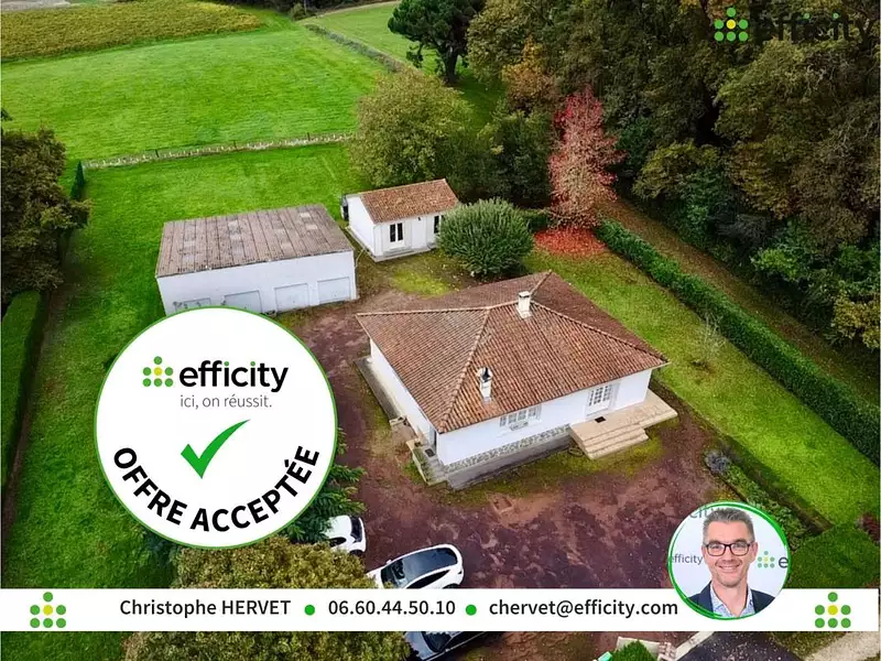 16440 CLAIX MAISON DE PLAIN PIED - 3 CHAMBRES + MAISON D'AMIS - GARAGES / HANGAR DE 180 m² - JARDIN - effiCity, l'Agence qui estime votre bien en ligne, vous propose cet ensemble immobilier composé de :