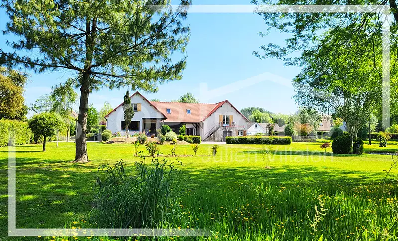 Située dans le village, au coeur d'un hectare 625 (16250 m2) de nature entièrement préservée, organisée et remaniée en parc paysagé autour d'un étang créé en eaux vives (sources), cette propriété présente une habitation principale, construction traditionnelle +++ de 2005, d'une surface habitable d'environ 165 m2, ainsi qu'un bâtiment catégorisé 'agricole', idéal pour installation d'une activité professionnelle, artisanale, ou d'hébergement touristisque, développant un préau et une pièce en rez-de-chaussée d'environ 80 m2 au sol, avec étage d'une surface au plancher avoisinant les 170 m2.