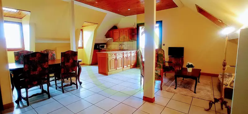 | Cuisine ouverte, aménagée, équipée | 2 salles de bain |