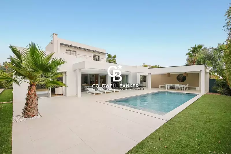 Magnifique villa contemporaine de 165 m² offrant de très jolies prestations soignées et élégantes, au coeur d'un quartier calme et proche des plages et des commodités, à quelques minutes seulement de l’aéroport de Toulon/Hyères.