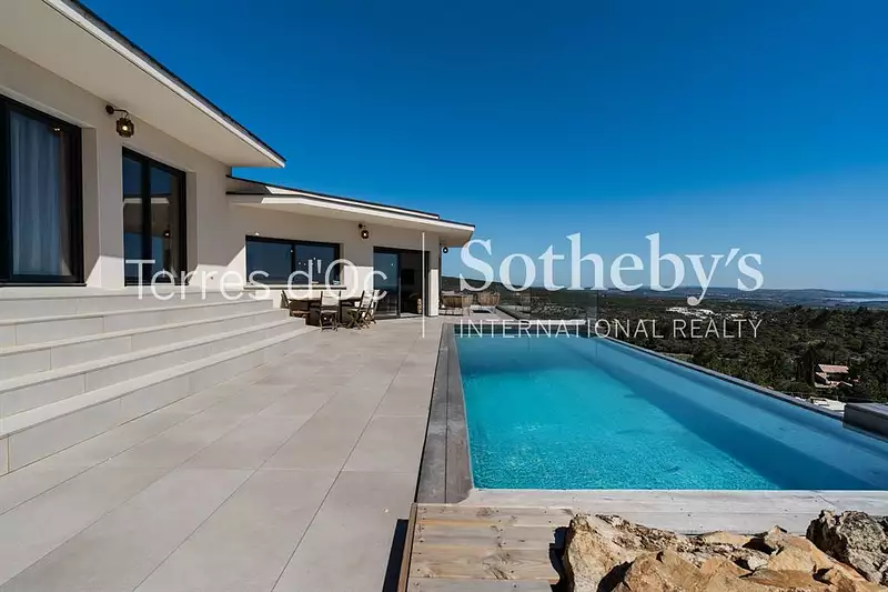 Vue dominante sur la garrigue, lumière omniprésente et Méditerranée à seulement 10 minutes : cette villa de 165 m² habitables construite en 2019 s’intègre parfaitement dans son environnement préservé. Elle offre 4 suites parentales, une pièce de vie de 70 m² avec cuisine ouverte, le tout orienté plein sud.