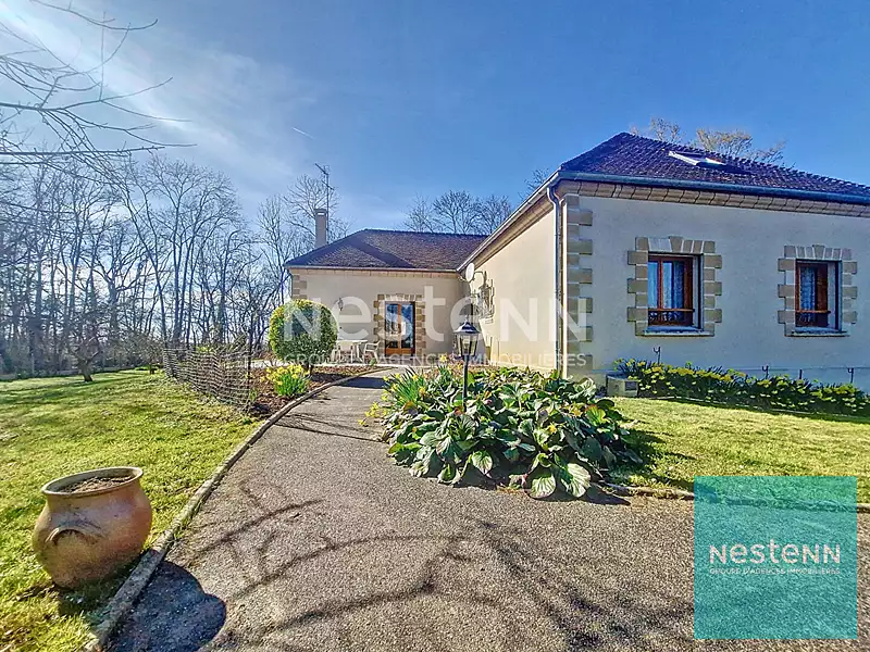 Nichée dans un écrin de verdure au coeur du parc de Saint Donain, venez découvrir cette maison édifiée sur un terrain de 5200 m² environ. Vous serez séduits par la qualité de ses matériaux, ses volumes et son très bon état général. Au rez-de-chaussée, vous découvrirez une entrée spacieuse, une cuisine ouverte sur un séjour de 43 m² environ avec cheminée, donnant sur une belle terrasse ensoleillée ; un cellier, deux belles chambres, une salle d'eau ainsi qu'un espace buanderie, un WC indépendant. A l'étage, un palier dessert deux belles chambres dont une de 28 m² environ pouvant être divisée en deux ainsi qu'une salle d'eau avec WC. Un sous-sol total compartimenté en un espace garage vous permettant de rentrer plusieurs voitures, un atelier, une cave ainsi qu'une cuisine d'été. Vous disposerez de belles prestations avec la porte de garage et le portail électrique. Un parc arboré, joliment entretenu avec deux terrasses à l'abri des regards vous permettant de recevoir vos proches. Ecoles, commerces et bus sur place. Gare SNCF à 10 minutes en voiture.