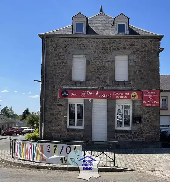Dans le village de CHATILLON SUR COLMONT, découvrez à la vente cet immeuble qui abritait un bar-restaurant et qui offre désormais une possibilité de maison d'habitation.