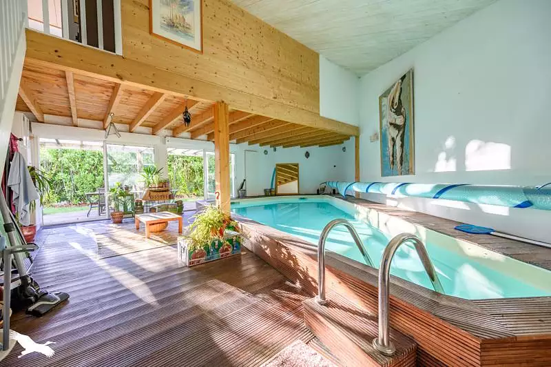 Proche de La Rochelle (15' en vélo), secteur de Périgny Rompsay et à 10 min à pied de toutes les commodités, belle maison familiale offrant cuisine ouverte sur séjour lumineux, 4 chambres dont 3 en rdc, un bureau, 2 salles d'eau, piscine intérieure chauffée, garage attenant, jardin arboré et sans-vis-vis. À visiter rapidement!!! Proposition d'aménagement virtuel non contractuelle en dernière photo.