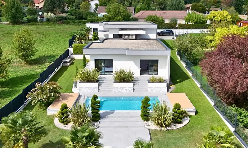 Saint Cassien VILLA CONTEMPORAINE D'EXCEPTION !!! Vous serez charmés par son architecture en cascade & ses beaux volumes de 165 m² habitables sur 2 niveaux plongeant sur l'espace piscine. 3 belles chambres chacune ouverte sur le jardin dont une suite parentale avec dressing & salle d'eau privative. Un magnifique espace de vie de plus de 63 m² comprenant une vaste cuisine entièrement équipée ouverte sur un salon / salle à manger offrant une vue dégagée sur les massifs. Chauffage au sol par Pompe à Chaleur & Climatisation réversible. Double garage avec portes motorisées. Magnifique espace piscine d'une superficie de 8X4, chauffée, agrémentée d'une terrasse amovible & exposée plein Sud, le tout donnant sur un joli jardin paysagé. Extérieurs entièrement aménagés avec goût, de belles terrasses à chaque niveau (pièce à vivre & espace nuit), cour goudronnée & portail électrique avec visiophone. Nul doute que cette villa d'architecte saura vous séduire par ses prestations haut de gamme !!! Consommation Energétique classée B : 88 kWh/m²/an. Px: 798 000 € (Honoraires Charge Vendeur).