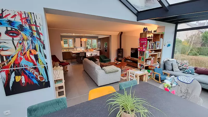 Belle maison de 185m² au sol entièrement rénovée en 2019, sans vis-à-vis et face à la forêt, proche de toutes les commodités comprenant au rez de chaussée : une spacieuse véranda donnant sur un séjour avec un poêle à bois et une cuisine ouverte entièrement aménagée et équipée, un couloir desservant 2 chambres avec placards, une salle de bains, et un WC. A l'étage : un palier vous mènera vers 2 chambres, dont une avec espace coiffeuse et un grand dressing possédant de nombreux rangements, une salle de bains + douche et un WC. Un sous-sol total avec un espace buanderie équipé d'un point d'eau, un garage de 25 m² avec une porte automatique et un local jardin. Chauffage gaz, fenêtres doubles vitrage PVC et aluminium, volets électriques et volets battants, climatisation et chauffage au sol dans la véranda. Terrain de 1303 m², un barbecue, une exposition plein Sud, un puit, un rangement extérieur pour le bois. Gare RER B et centre ville à 15 min à pied. Les informations sur les risques auxquels ce bien est exposé sont disponibles sur le site Géorisques : www.georisques.gouv.fr