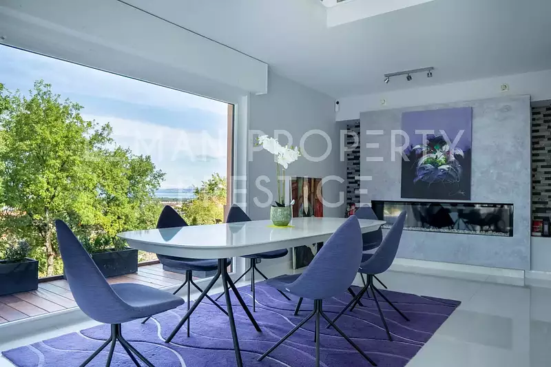 Découvrez cette magnifique propriété entièrement rénovée avec goût et belles prestations. Nichée dans un quartier pavillonnaire paisible avec une vue sur le Lac. Cette villa offre de beaux volumes et est très lumineuse. Le vaste séjour cathédrale baigné de lumière grâce à ses larges baies vitrées ouvre sur un extérieur agréable, idéal pour se détendre au bord de la piscine avec abri. La cuisine moderne équipée et son arrière-cuisine fonctionnelle complètent parfaitement cet espace de vie convivial. Trois chambres confortables dont deux au rez-de-chaussée avec salle de douches, rangements et WC. A l'étage mezzanine / bureau avec extérieur, une belle suite parentale avec salle de bains, dressing, balcon. Un sous-sol total complète le bien avec sauna. Cette demeure allie parfaitement confort, luminosité et cadre privilégié pour une qualité de vie exceptionnelle.