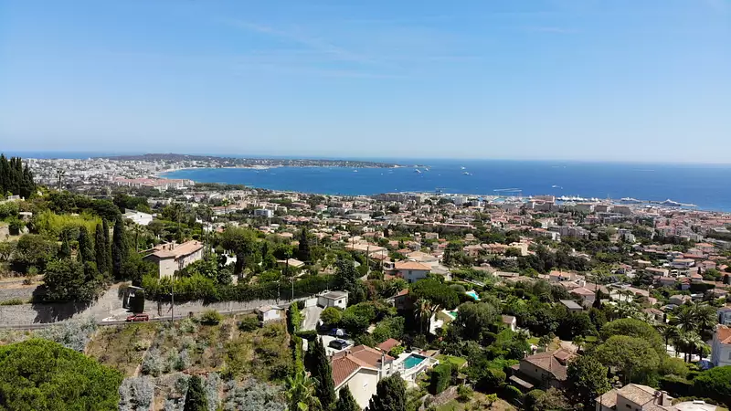 GOLFE-JUAN, sur les hauteurs, dans un environnement résidentiel au calme absolu avec juste le chant des cigales pour vous bercer durant votre sieste, bénéficiant d'une vue mer panoramique imprenable du Cap d' Antibes aux îles de Lérins, mas de charme d'origine 19 ème siècle sis sur un terrain de 1335 m2 complanté d'agrumes et d'essences méditerrannéennes et avec une superbe piscine et jacuzzi, .