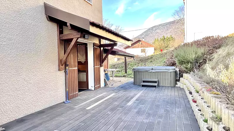 Maison individuelle au calme de 165 m2 habitable située proche du centre-ville de Valserhône et à 12 min de l'entrée de l'autoroute, à 40 min du centre de Genève.