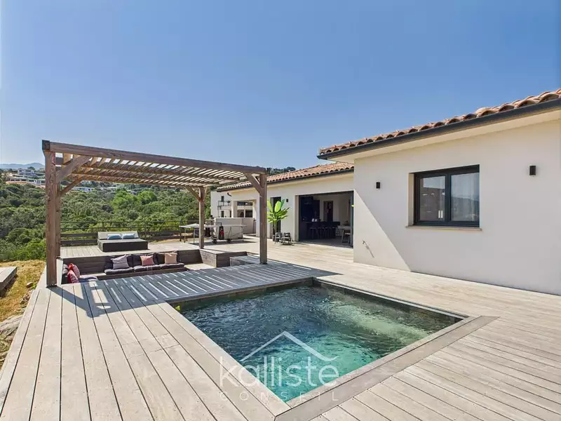 À Porticcio, cette villa contemporaine construite en 2019 offre un cadre de vie moderne, lumineux et très confortable. Située dans un environnement calme tout en restant proche des commerces, des écoles et des plages, elle développe 166 m² habitables et propose des prestations de qualité.