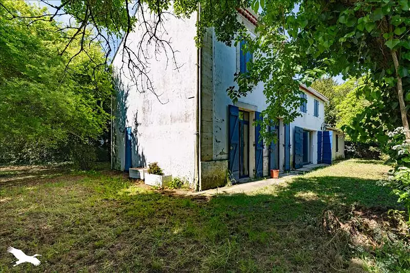Jau Dignac et loirac , Ancien Chai de 166 m² sur deux niveaux , Au rdc une piece de vie , une chambre , une salle à manger , cuisine et salle de bain , A l'etage trois chambres dont une avec une douche , wc . A l'exterieur vous profitez d'un grand jardin arboré de 1700 m²