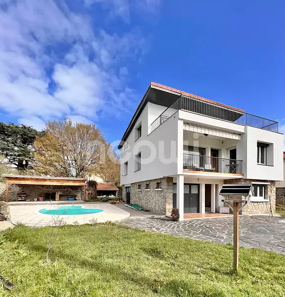 RIOM, EXCLUSIVITE, à 5 minutes à pied du centre-ville, agréable villa de 1960 entièrement rénovée, localisée au fond d’une impasse, son entrée vous mène au premier étage composé d’un palier, d’une cuisine moderne équipée ouverte sur un espace de vie lumineux et sans vis-à-vis permettant d’accéder à un balcon avec une vue dégagée, le niveau est complété par deux spacieuses chambres avec dressing et une salle de bains. Le second étage dispose de deux chambres dont une avec une terrasse offrant une vue imprenable sur Riom, une salle d’eau et un grenier pour du stockage. Au rez-de-chaussée, vous découvrirez une cinquième chambre (bureau à l’usage des propriétaires) et indépendamment un sous- sol comprenant un grand garage de 42 m2 carrelé avec son atelier sur le fond, une lingerie et une chaufferie. Bénéficiant d’une charmante décoration, la prestation offre de nombreux éléments de confort : double vitrage récent, volets roulants électriques, isolation des murs extérieurs réalisée en 2022, couverture et isolation du toit refaites en 2017 et remplacement de l’installation au gaz de ville par une chaudière à granulées dernière génération permettant la réalisation d’économies d’énergie. Édifiée sur une parcelle de 1015 m2, la villa dispose d’un terrain aménagé, végétalisé, clos et sécurisé et bénéficie d’une agréable piscine avec une pergola en bois idéale pour de belles soirées estivales.