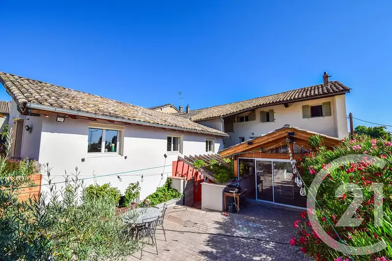 - SAINT LAGER - Idéalement situé au cœur de la commune de la commune avec ses commerces et écoles, et à quelques minutes seulement de Belleville (gare et accès autoroute), CENTURY 21 Coquillat immobilier vous propose de découvrir ce bien coup de cœur!! La maison principale, d'environ 130m² habitable, se compose d'une grande pièce de vie, une suite parentale de plain pied, ainsi que de 3 chambres supplémentaires, une salle d'eau et un bureau au niveau supérieur. Vous trouverez en plus un appartement T2 totalement indépendant, idéal pour un adolescent ou tout autre personne souhaitant de l'autonomie. Possibilité également de faire de la location temporaire, déjà mis en place par le propriétaire pouvant rapporter entre 15 000 et 20 000€/an. L'extérieur a été soigneusement aménagé avec une cuisine d'été couverte, une piscine récente chauffée et son pool house. La maison a été entièrement refaite en 2018 (isolation, chauffage, menuiseries...) permettant de vous installer directement dans votre nouveau chez-vous et de profiter de ce bien rare sur le marché. Ne tarder plus et contactez-nous afin d'organiser une visite ! Statut agent commercial Montant estimé des dépenses annuelles d'énergie pour un usage standard entre 2780.0 € et 3820.0 € indexées aux années 2021, 2022, 2023 (abonnements compris). Bien proposé par Arnaud DELAMARRE EI, agent commercial (RSAC 900538950)