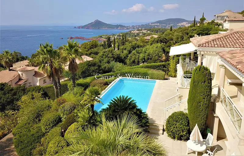 Au coeur d'un domaine sécurisé, découvrez cette somptueuse villa offrant une vue à couper le souffle sur la Méditerranée, embrassant un panorama unique depuis l'Île Vieille jusqu'au sémaphore du Dramont. Dès votre arrivée, vous serez immédiatement transporté par une atmosphère balnéaire. Le séjour spacieux s'ouvre largement sur la mer, dévoilant un spectacle quotidien. La cuisine américaine entièrement équipée allie modernité et convivialité, tandis qu'une buanderie complète les équipements pour un confort optimal. La villa offre **5 chambres**, véritables havres de paix, idéales pour accueillir famille et invités. Les salles d'eau et salles de bains sont conçues avec soin, mêlant élégance et fonctionnalité. A l'extérieur, de vastes terrasses orientées plein sud vous invitent à profiter du doux climat méditerranéen, parfaites pour se détendre ou recevoir en toute sérénité. La piscine à débordement, véritable pièce maîtresse, semble se fondre dans l'horizon, ajoutant une note de raffinement et de tranquillité. Un garage spacieux garantit la sécurité de vos véhicules, tandis que le parc paysager, orné d'essences méditerranéennes, offre un écrin de verdure propice au repos et à l'évasion. Mickael MERESSE (EI) Agent Commercial - Numéro RSAC : 811 785 302 - Frejus.