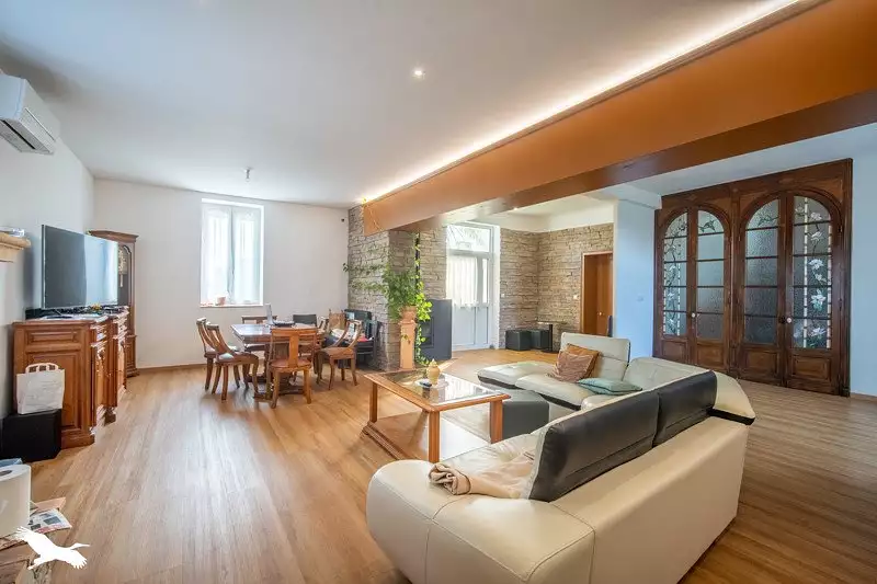 Venez découvrir cette élégante maison de maître entièrement rénovée, mêlant charme et confort. Elle offre de vastes espaces : 4 chambres, un bureau, une lumineuse pièce de vie, une cuisine équipée et 3 salles d’eau. Le tout sur un terrain clos agrémenté d’une grande dépendance.