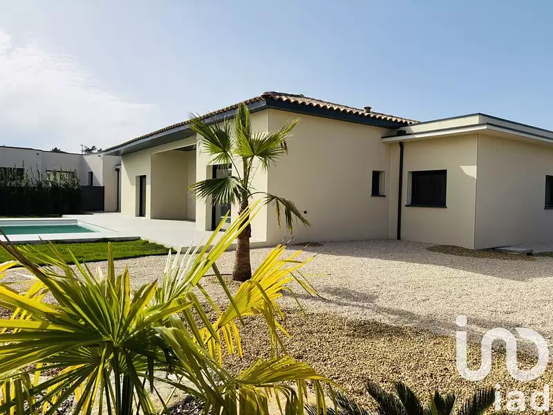 iad France - Lamia Korkbane vous propose: MAISON CONTEMPORAINE PLAIN PIED AVEC PISCINE - 4 CHAMBRES - JARDIN - GARAGE
