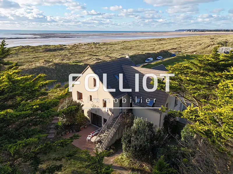 Située à Lindberg Plage, cette maison en front de mer bénéficie d'un emplacement exceptionnel, offrant une vue imprenable sur la mer et le Cap de Carteret. L'environnement calme et paisible, rythmé par les marées, invite à la détente et à la contemplation. Un véritable havre de paix où la nature et la mer se rencontrent. La maison, érigée sur un sous-sol complet, se compose d'un rez-de-chaussée surélevé comprenant une entrée spacieuse, une cuisine aménagée et équipée et un salon lumineux doté d'une cheminée insert. Ce dernier, ouvert sur l'extérieur, permet de profiter pleinement de la vue sur la mer et le Cap de Carteret, tout en offrant un cadre agréable pour des moments conviviaux ou de relaxation. Le rez-de-chaussée offre également deux chambres, une salle de bains moderne et des WC séparés, le tout dans un cadre fonctionnel et optimisé pour le confort quotidien. A l'étage, on retrouve deux chambres supplémentaires, ainsi qu'un bureau qui donne accès à une terrasse privée avec une vue panoramique sur la mer. Un espace parfait pour profiter des paysages à toute heure de la journée, que ce soit pour un moment de tranquillité ou pour recevoir des invités. Une salle de douche vient compléter cet étage, offrant un confort supplémentaire. Le sous-sol, spacieux et pratique, dispose d'un double garage avec atelier, d'une chambre, d'une salle de douche avec WC, d'une pièce de rangement et de deux caves. Ce vaste espace permet de nombreuses possibilités d'aménagement, que ce soit pour du stockage, du bricolage ou pour accueillir des amis et la famille. L'extérieur de la propriété est tout aussi séduisant. Le jardin, à l'abri des regards, offre une belle intimité. La terrasse, accessible directement depuis le salon, permet de profiter pleinement de la vue mer dans un cadre calme et agréable. Bien que cette maison offre un potentiel certain, il conviendra de prévoir des travaux de rafraîchissement pour moderniser certains espaces et personnaliser la décoration selon vos goûts. Ce bien rare à la vente constitue une véritable opportunité pour ceux qui souhaitent allier confort, tranquillité et vues exceptionnelles. Un lieu de vie parfait pour se ressourcer au quotidien, tout en étant à deux pas de la mer. Cette maison a une classe énergétique E(280kWh/m²/an). Quant à la classe climatique, cette dernière est notée B( 9KG CO2/m²), impliquant un taux d'émissions de gaz à effet . Le montant des dépenses annuelles d'énergie pour un usage standard est estimé entre 3090 euros et 4260 euros en 2021,2022 et 2023. Les informations sur les risques auxquels ce bien est exposé sont disponibles sur le site Géorisques : www.georisques.gouv.fr. Pour plus d'informations ou pour organiser une visite, n'hésitez pas à contacter Anissa ARNONE RSAC 941 571 515 au 06 98 85 06 48 ou par mail à (4.75 % honoraires TTC à la charge de l'acquéreur.) Anissa ARNONE (EI) Agent Commercial - Numéro RSAC : 941.571.515 - CHERBOURG EN COTENTIN.