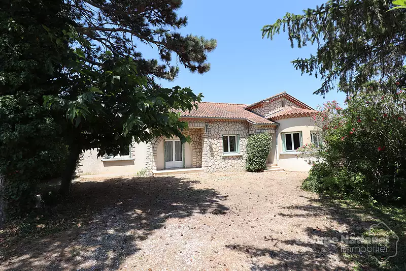 A proximité immédiate des commerces et des commodités, grande maison à usage d'habitation d'une superficie d'environ 168m2 sur un terrain de 825m². Elle se compose au rez-de-chaussée : d'un hall d'entrée, un séjour, un salon, une salle à manger, une cuisine, une buanderie, un cellier, un bureau, trois chambres, une salle d'eau, une salle de bains, deux wc séparés et à l'étage : une chambre, une salle d'eau+wc . Un grand garage de 36m² complète la villa. Équipements : Climatisation, double vitrage, menuiseries PVC, tout à l'égout, eau du canal, gouttières.