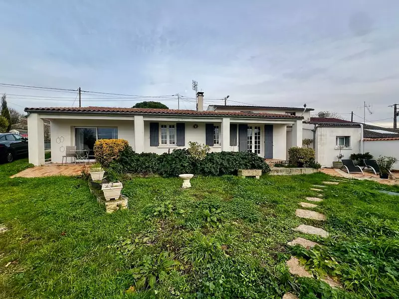 Maison charentaise comprenant au rez de chaussée : une entrée, un séjour, une salle à manger, une cuisine aménagée et équipée, une salle d'eau, un wc, 2 chambres et une suite parentale avec sa salle d'eau et wc,