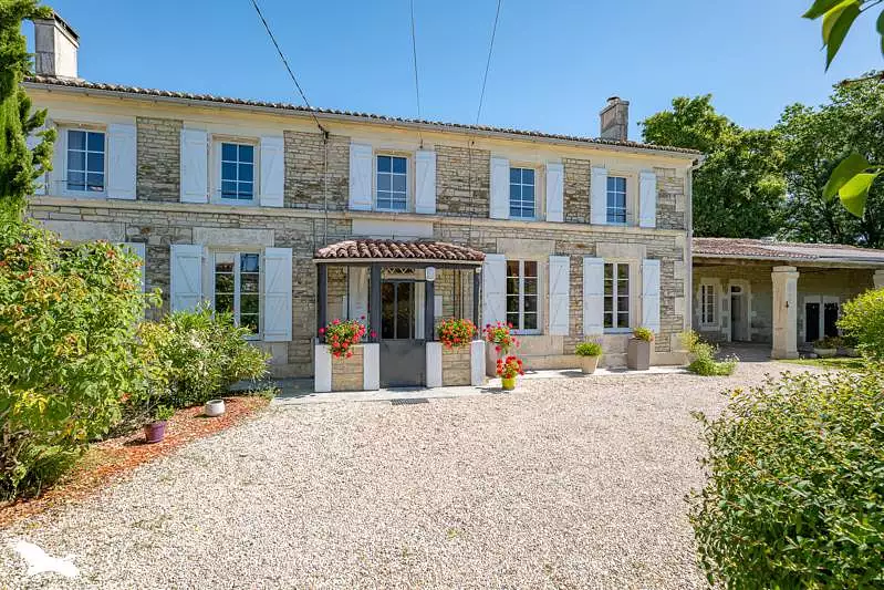 Authentique charentaise, avec pierres apparentes, sans aucun vis à vis, cuisine/repas récente, salon avec insert, 3 chambres, salle d'eau et salle de bains, arrière-cuisine/buanderie, nombreuses dépendances offrant plein de possibilités, piscine. Grand terrain clos de plus de 2000 m² avec vue dégagée et piscine semi-enterrée. Proposition d'aménagement virtuel non contractuelle en dernière photo. Logement à consommation énergétique excessive : classe G