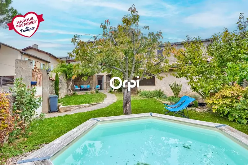 MORNANT au coeur du village, venez découvrir cette maison ancienne rénovée de 168m2 qui bénéficie à la fois d'un jardin arboré et d'un garage bien utile. Clos de mur, son jardin verdoyant vous séduira par son charme et sa piscine hors sol. Une terrasse couverte vous accueille avant de rentrer dans la maison où de jolis volumes vous attendent. Cuisine équipée, salle à manger, salon, 4 chambres, 5ème possible (grenier actuel), 2 salles d'eau, 2 WC, cave voutée de 29m².