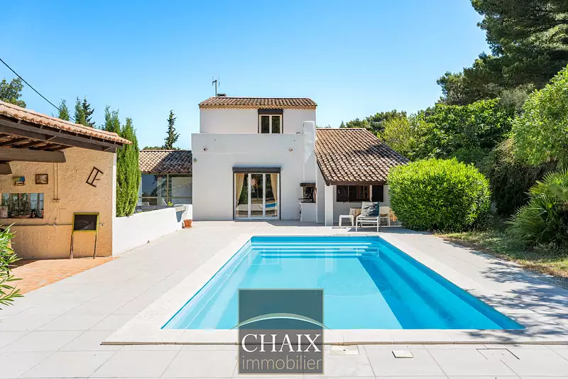 SOUS OFFRE PAR CHAIX IMMOBILIER...En exclusivité, aux portes de Cassis. Cette villa est située dans un environnement privillégié, au calme, sans vis à vis, orientée plein sud avec une trés belle vue dégagée sur la campagne. Ce bien offre plus de 160 m2 habitables sur un terrain de plus de 4000 m2 arboré, avec piscine, cuisine d'été, de nombreuses terrasses ainsi qu'un double garage.