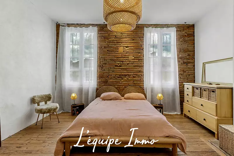 La rénovation de grande qualité, avec des matériaux sains tels que les enduits de terre, de chaux et plâtre, a su préserver l'âme de la maison. Dès l'entrée, vous serez séduits par son caractère unique, les poutres apparentes, la belle hauteur sous plafond, les tomettes d'origine et les murs en briquettes toulousaines.